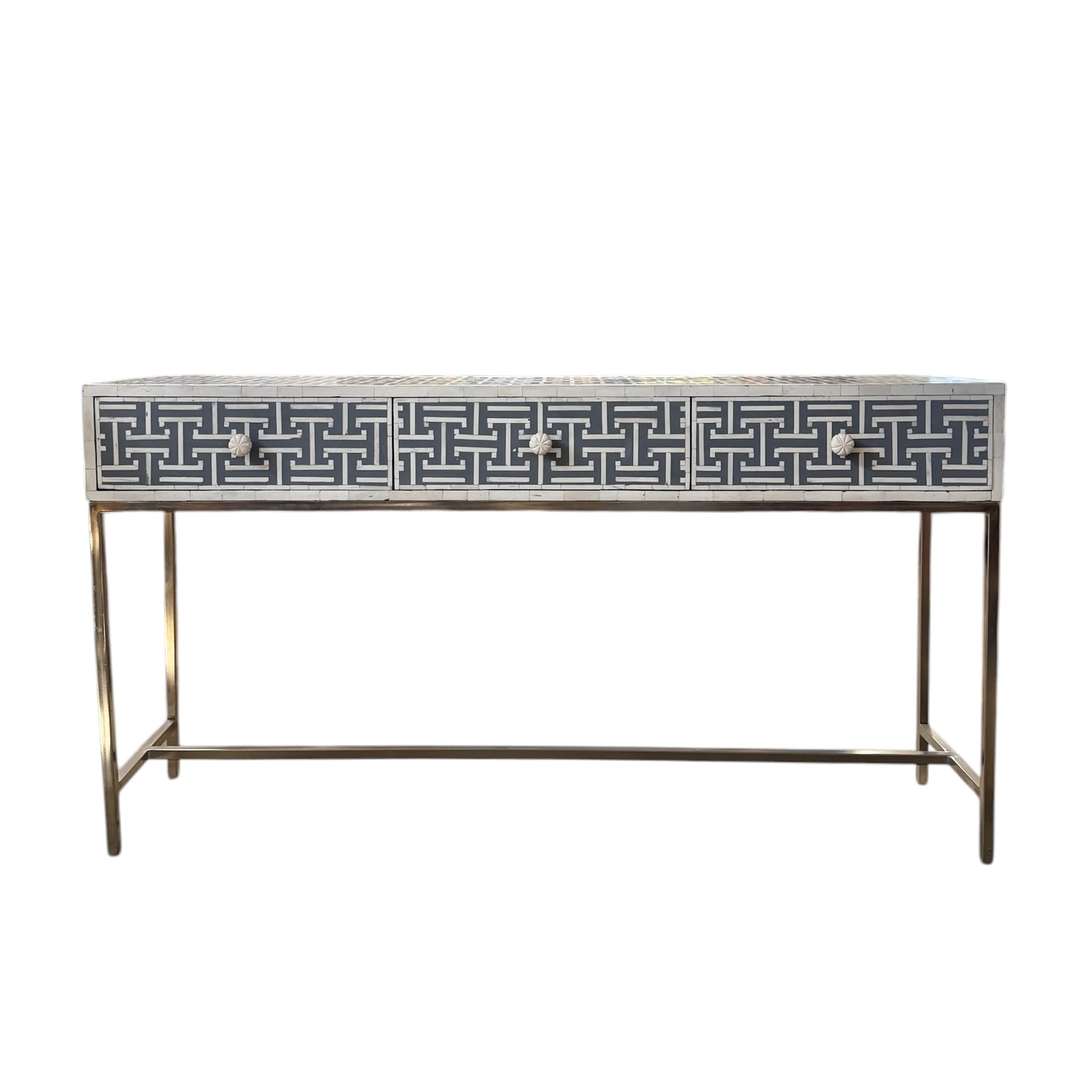 Aegean Bone Inlay Console Table Grey Resin