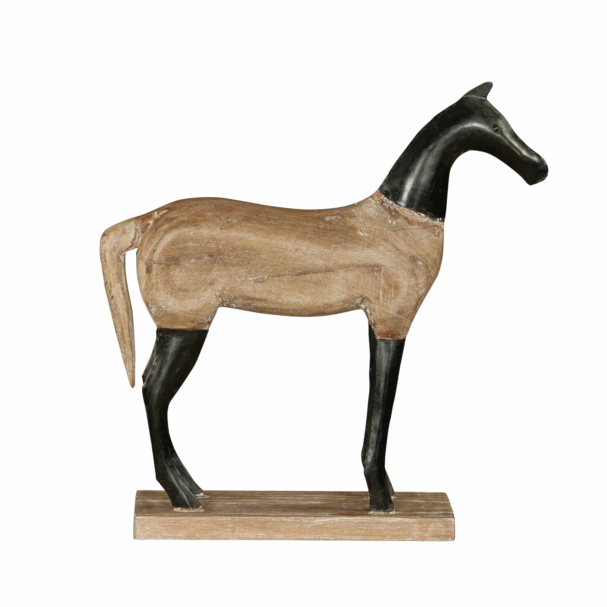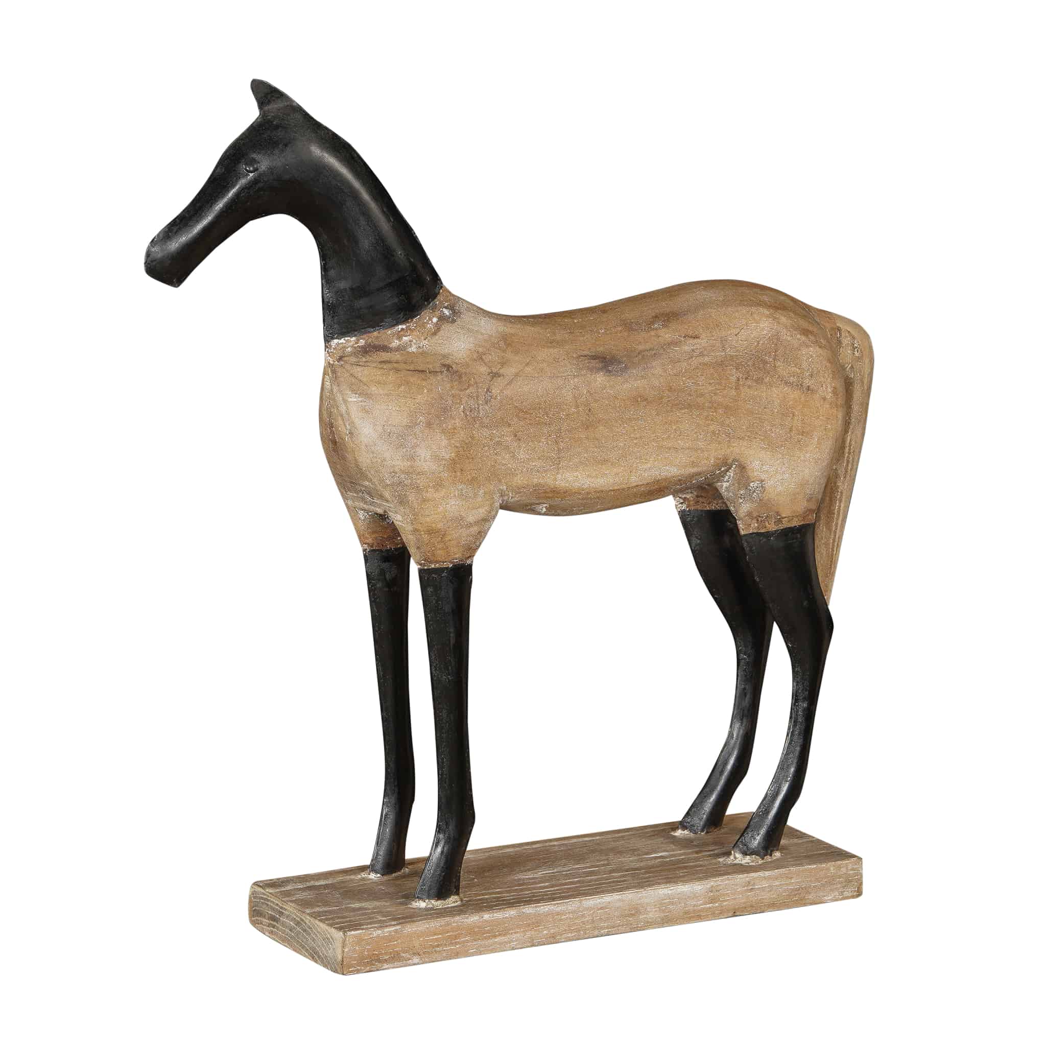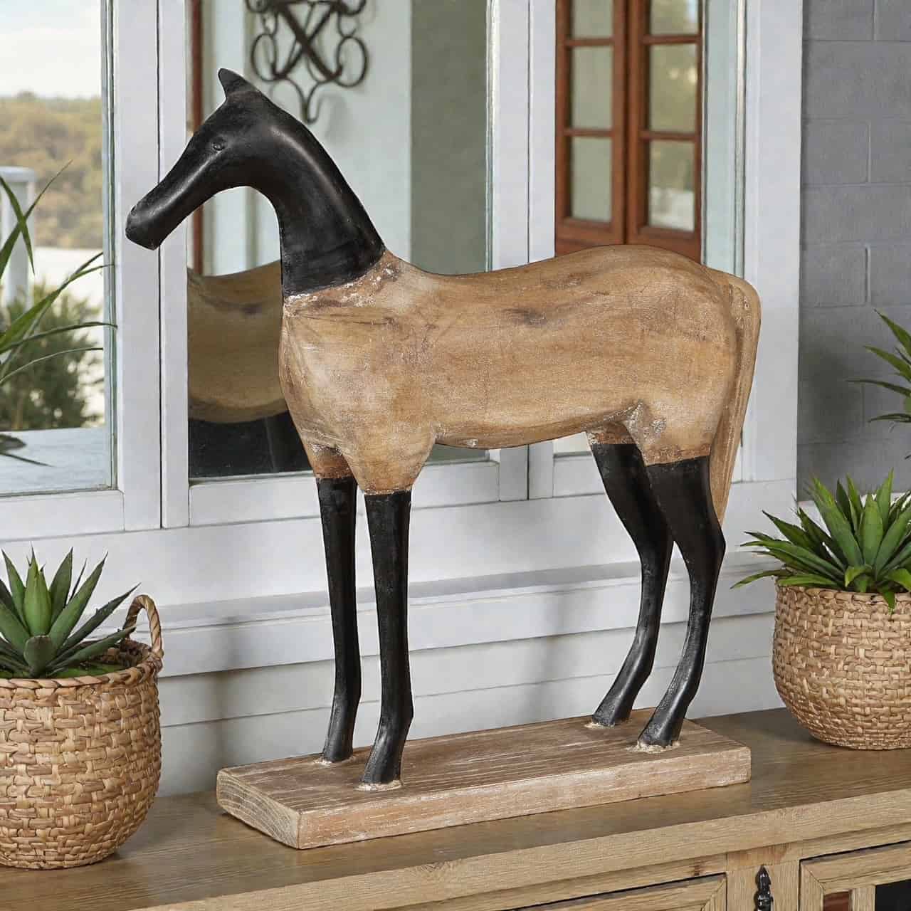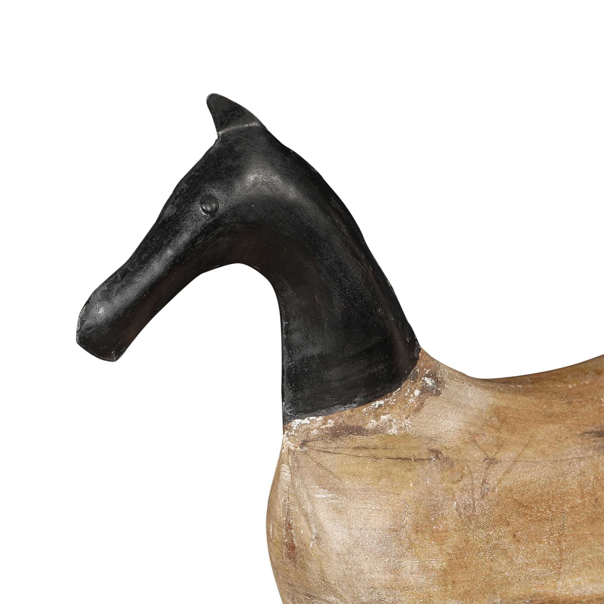 Simple in form yet rich in character, this stylised decorative horse sculpture stands an impressive 49cm high, making it a standout accent in any interior. Skilfully handcrafted, it combines natural timber with contrasting iron detailing to create a timeless decorative objet with strong visual presence.