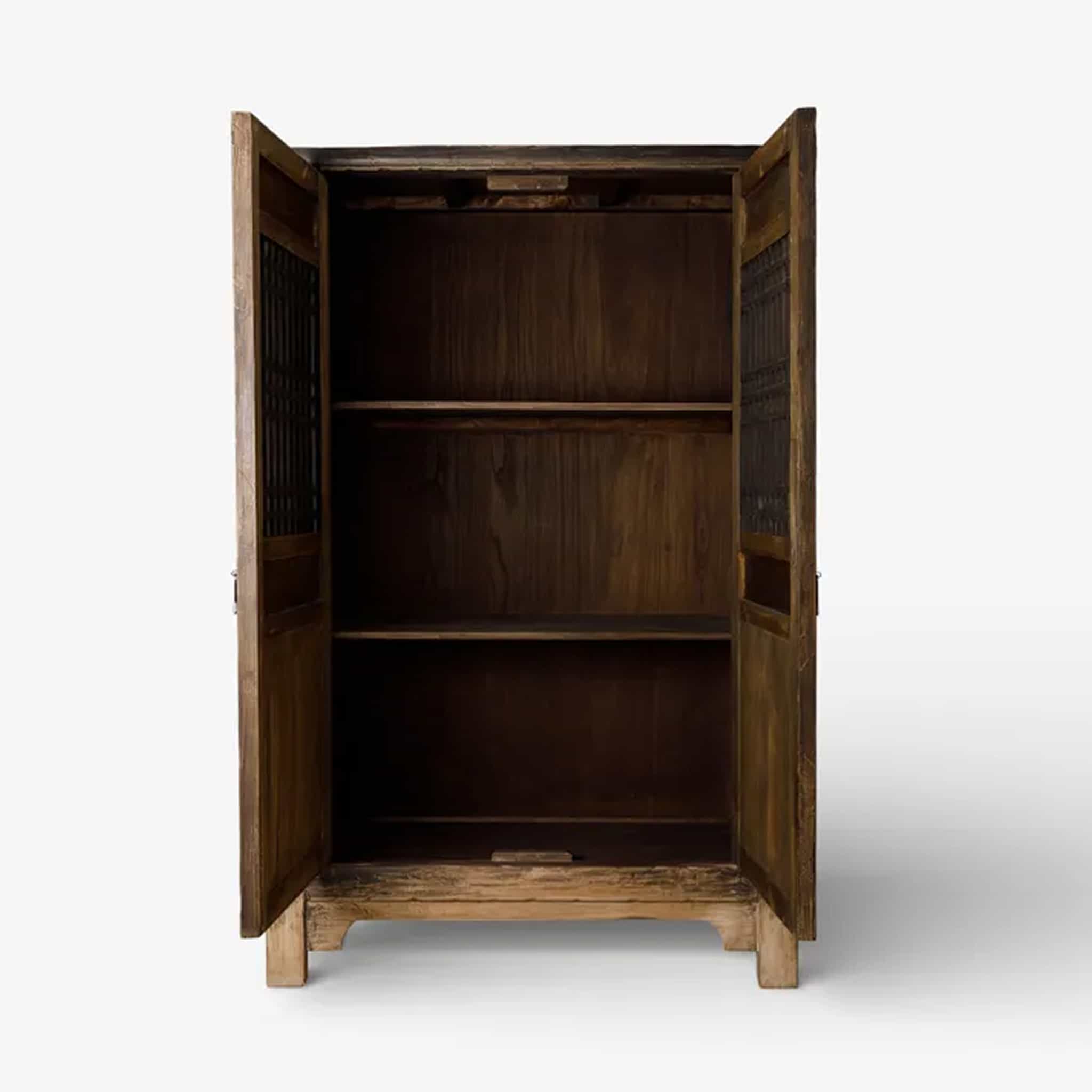 The Nomad Cabinet brings instant character and depth to any interior, blending heirloom craftsmanship with a beautifully timeworn vintage-boho aesthetic. Crafted from solid reclaimed pine, this striking piece features rich, intricate carving and distinctive gridded panel detailing that evoke a sense of history and wanderlust — reminiscent of treasures discovered on distant travels and kept for generations.