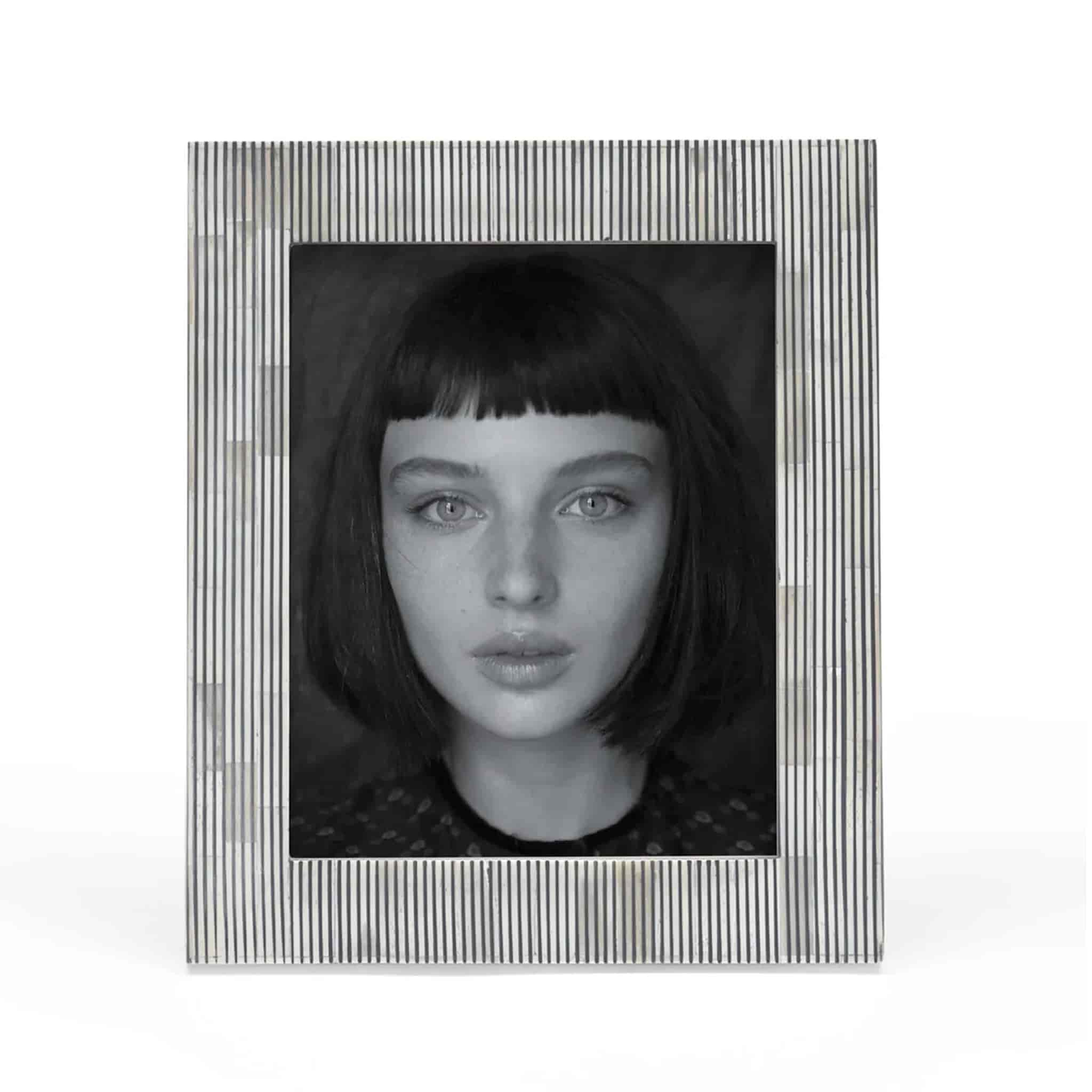 Elevate your most cherished memories with the Shibi 8×10 Photo Frame. Expertly handcrafted from natural bone, this striking frame features a bold black pinstripe design, creating clean lines, striking contrast, and timeless visual appeal.