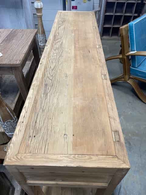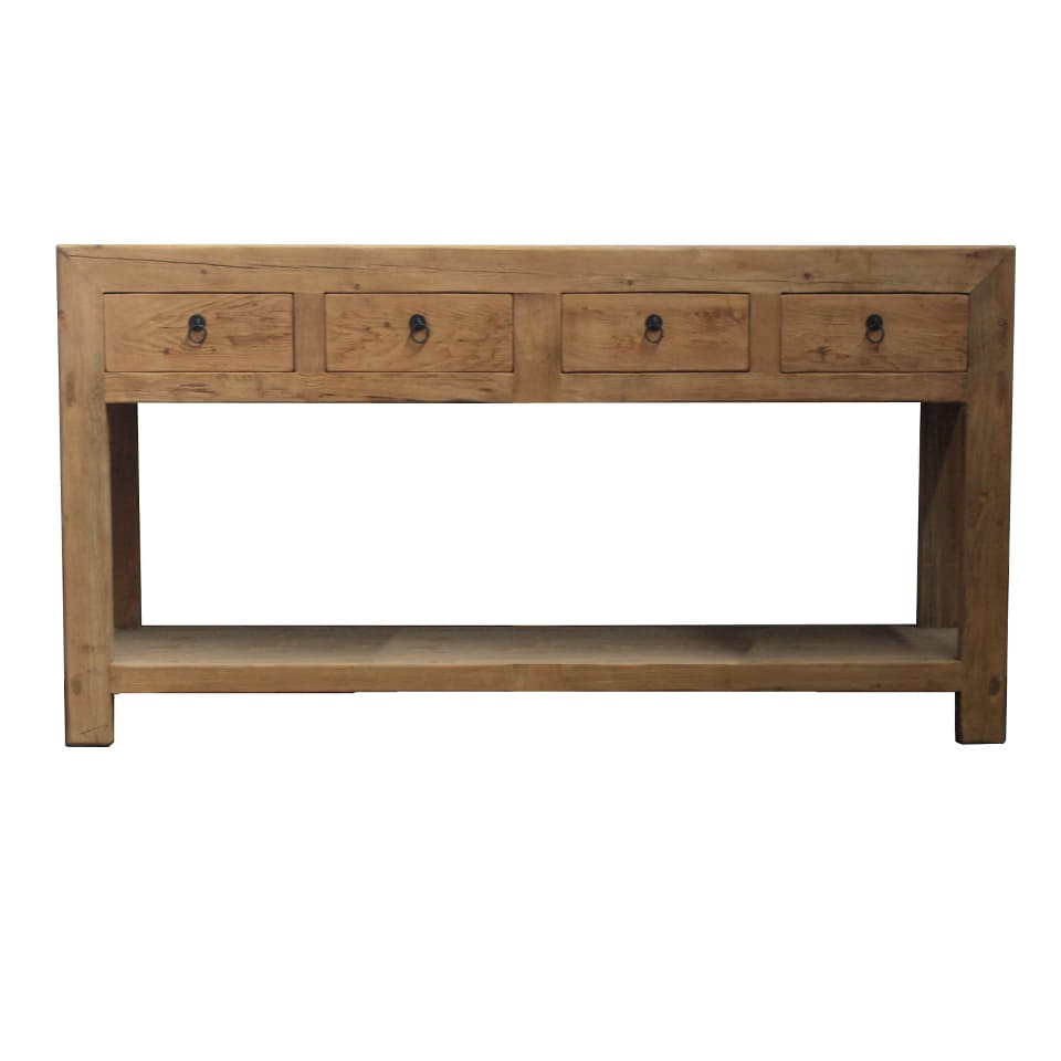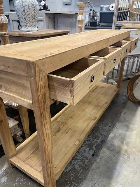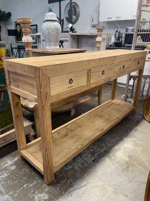 A substantial and character-filled console for a hallway or living space. Featuring 4 drawers and a bottom shelf in rustic recycled timber.